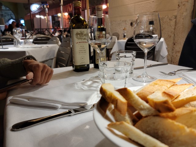 まずは、ヨーロッパではおなじみのパン。これは注文する前に出てきます。イタリアならではと思ったのは、フランスパンとともにフォッカチオが入っていたことかな。